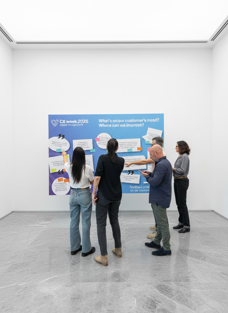 Visual identity and event branding for CX Week at AlignTech - a company-wide event celebrating customer experience, including talks, panels, and an interactive room showcasing client feedback and product use.
